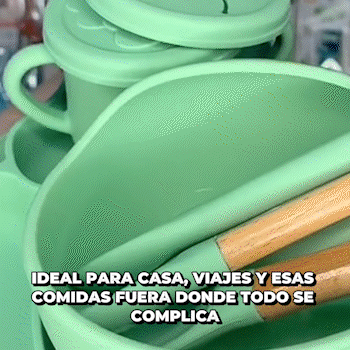 Este set es perfecto para la silla alta, la mesa, donde la abuela, donde el restaurante, donde sea. Lo llevas fácil, lo pones rápido y te ahorra el “¿con qué le doy?” cuando sales. Es de esos básicos que terminas usando TODOS los días.