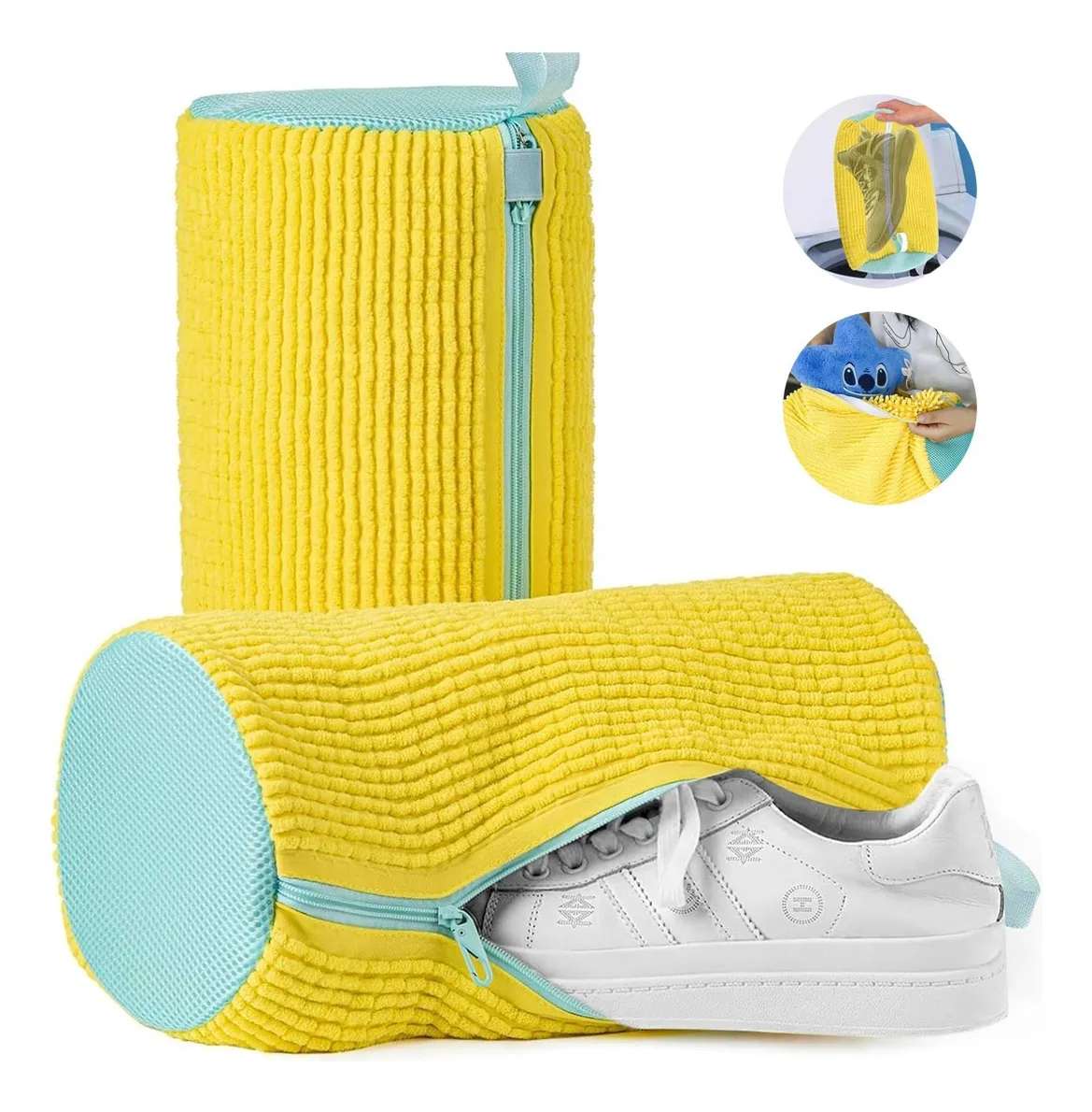 Viene en set de dos, así que puedes lavar dos pares al mismo tiempo o separar colores. Es ligera, fácil de empacar y también sirve como bolsa de viaje para zapatos cuando no la estés usando en la lavadora. Perfecta para deportistas, familias, estudiantes y cualquiera que quiera mantener su calzado impecable sin complicaciones.